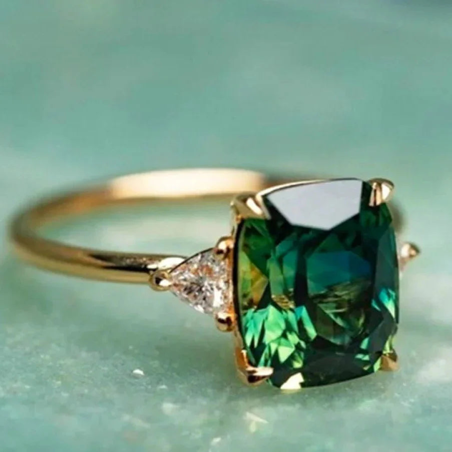 - Material: Premium metal with a polished gold finish and green zirconia stone.