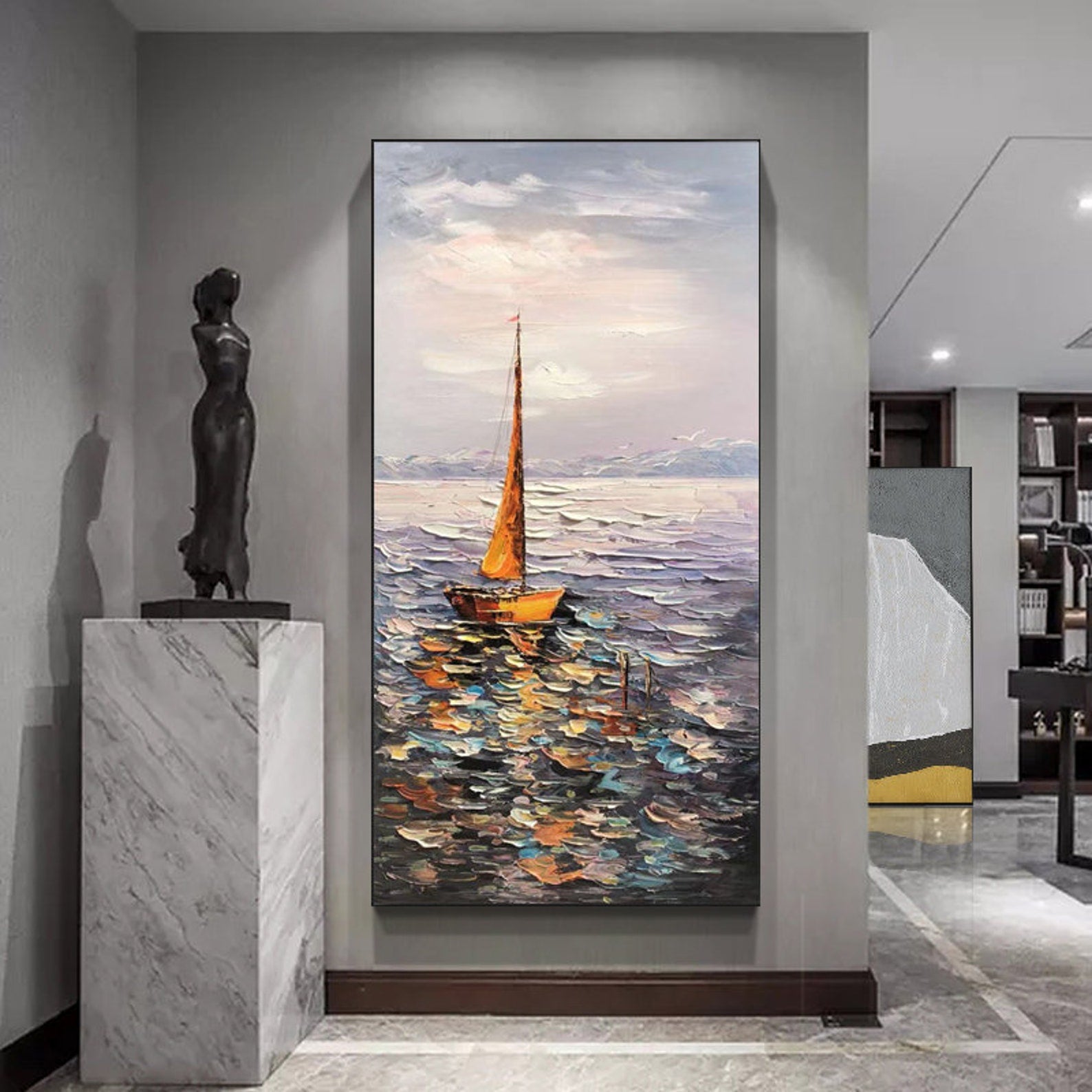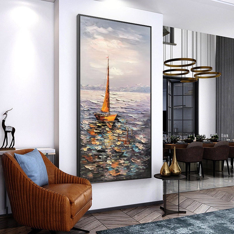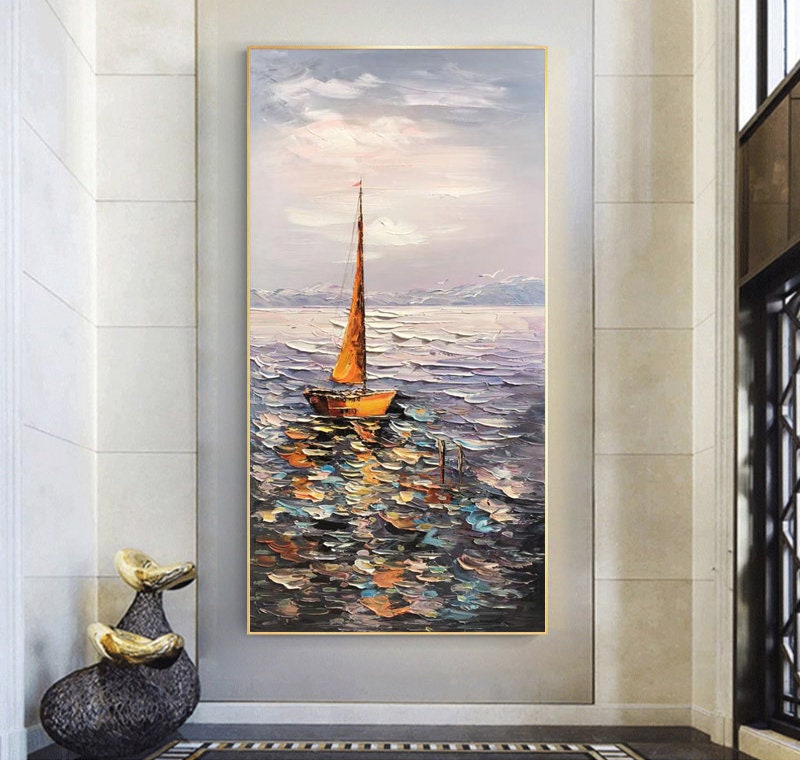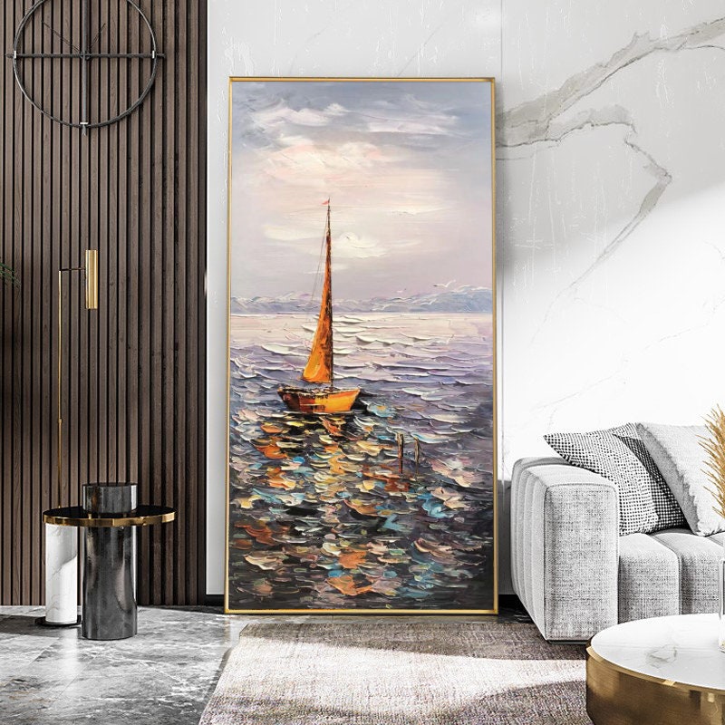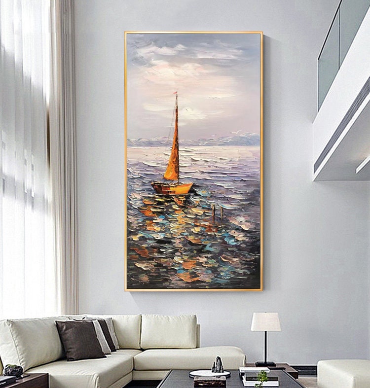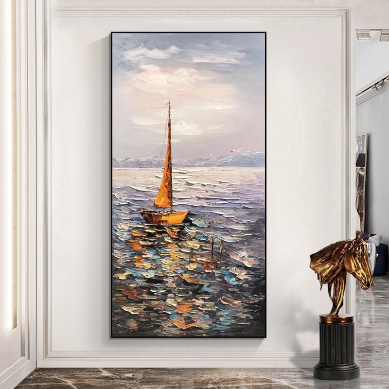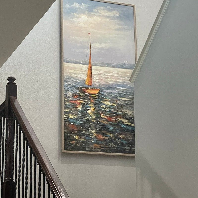 Sailboat Ocean Oil Painting - Impressionist Seascape Canvas Wall Art#MM472